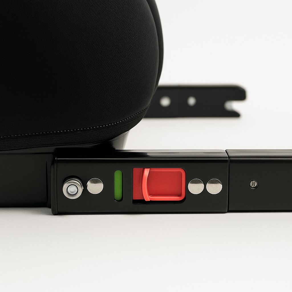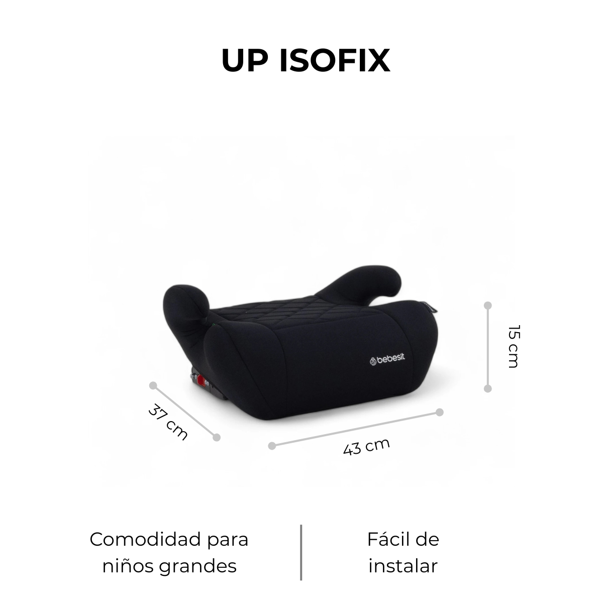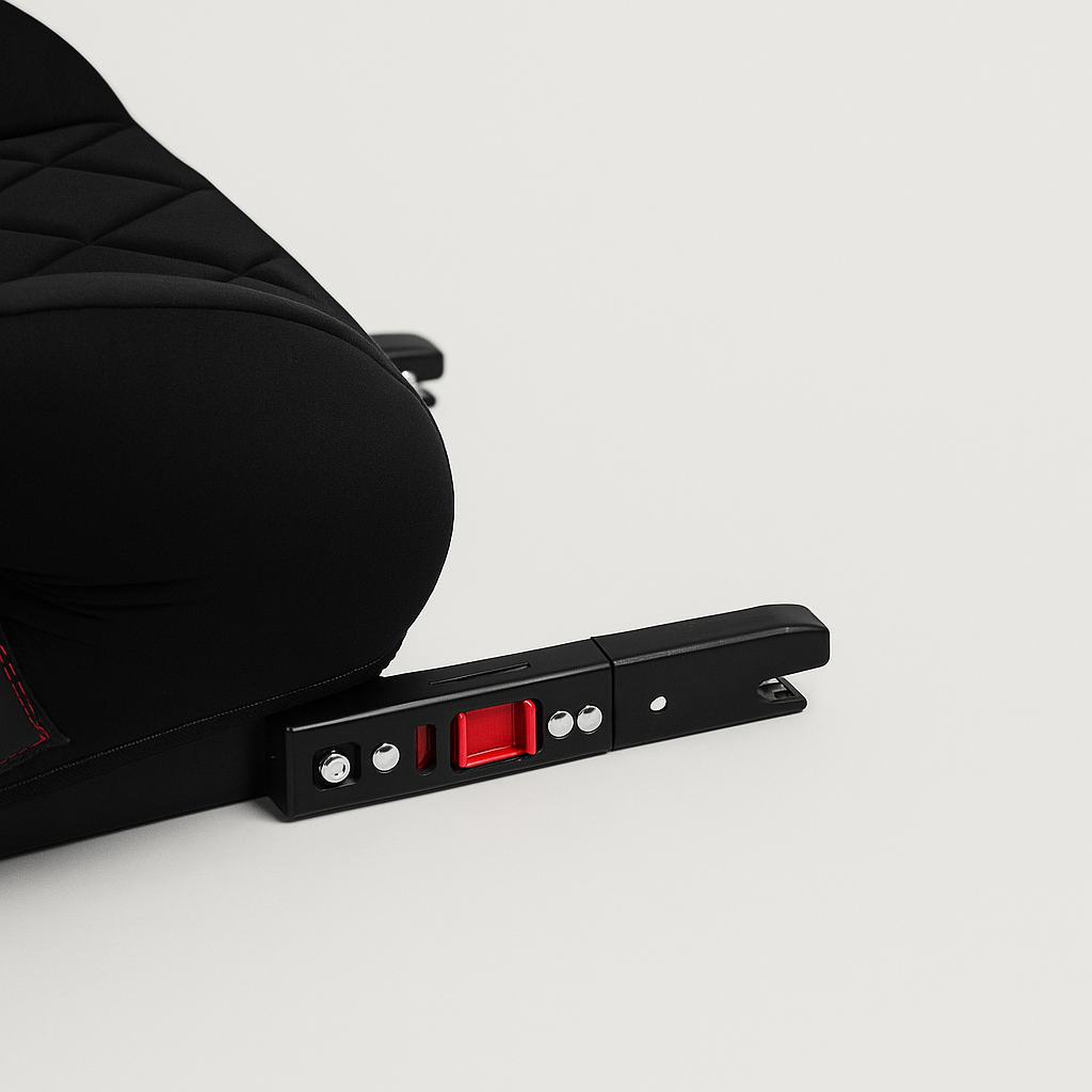 Se instala fácilmente usando el sistema Isofix del vehículo, asegurando que el alzador quede firme y seguro, incluso cuando no está en uso.