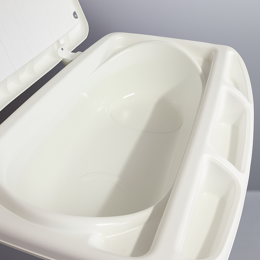 Cuenta con una confortable tina anatómica que garantiza el bienestar del bebé durante el baño. Incluye compartimientos para los accesorios y una manguera para el desagüe, brindando comodidad y practicidad en cada uso.