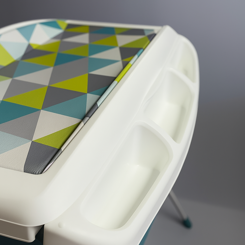 Incluye una tapa de tina que funciona como cambiador acolchonado, ofreciendo un espacio muy cómodo para secar y vestir al bebé.