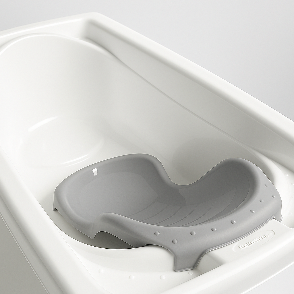 Bañera multifuncional con diseño moderno y novedoso, pensada para adaptarse a tus necesidades diarias en el momento del baño del bebé. Tiene la altura ideal para que puedas bañarlo sin esfuerzo ni cansancio.