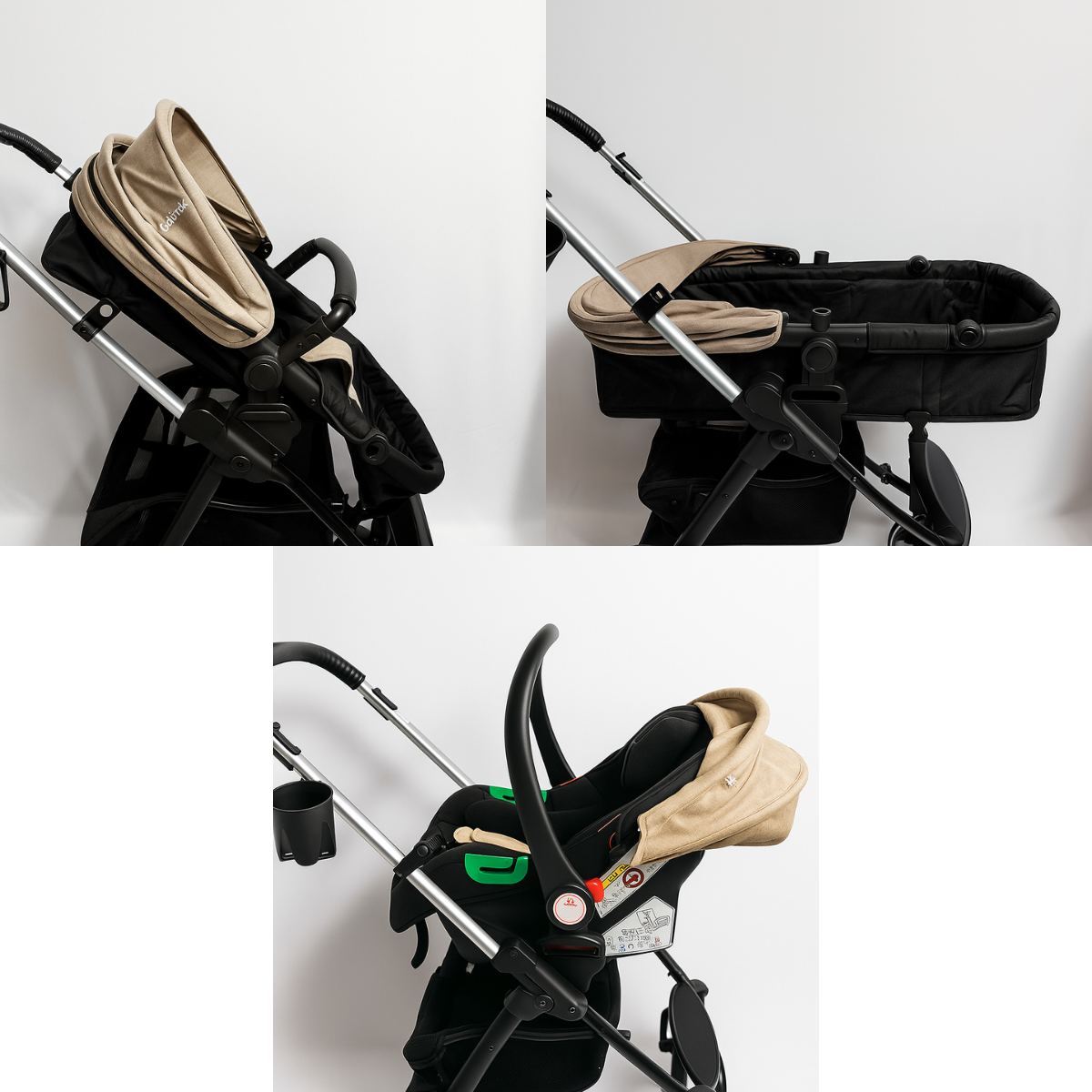 Asiento convertible en moisés: Perfecto para recién nacidos, brinda una posición totalmente horizontal.