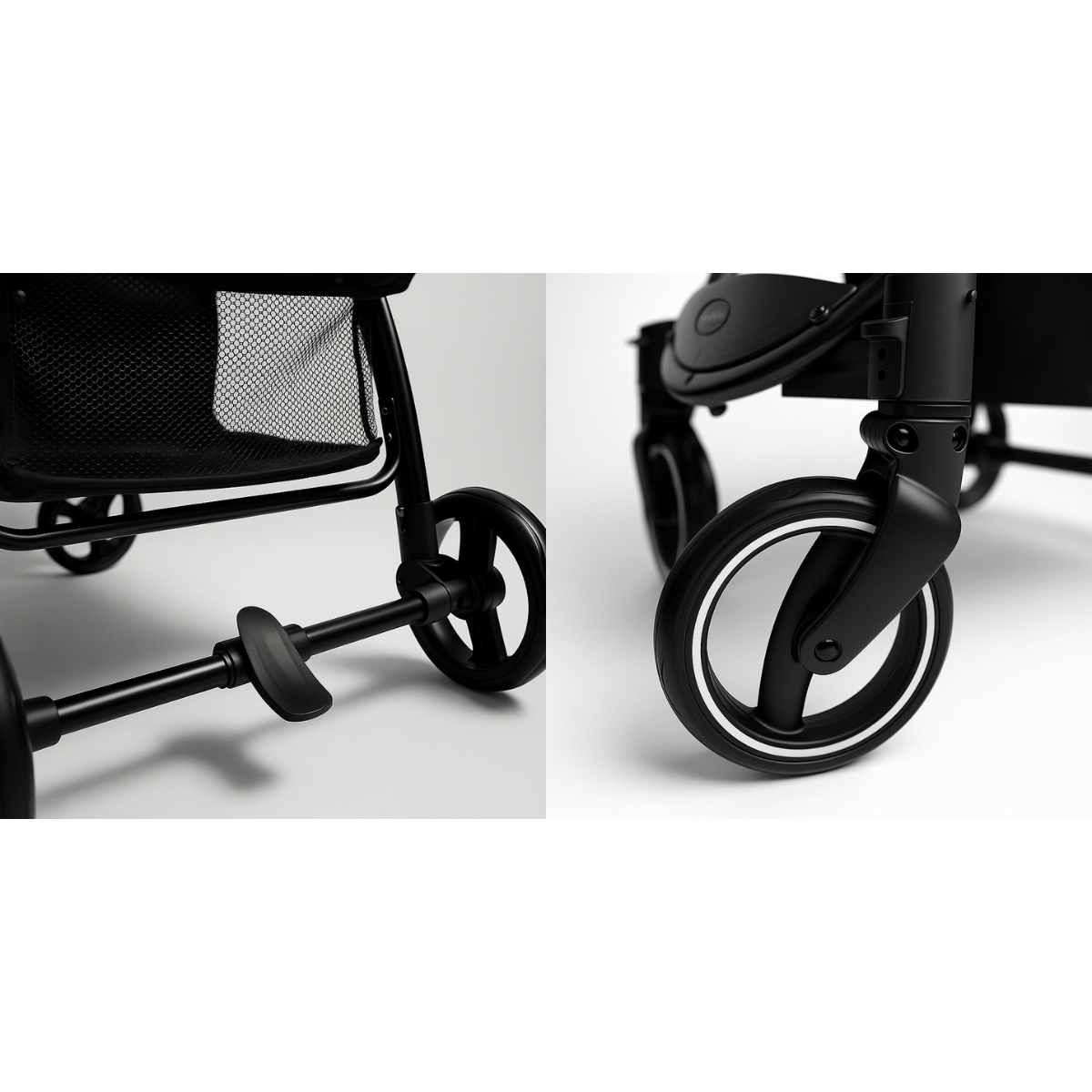 Ruedas delanteras desmontables con botón de seguridad: Para mayor practicidad al guardar o transportar.