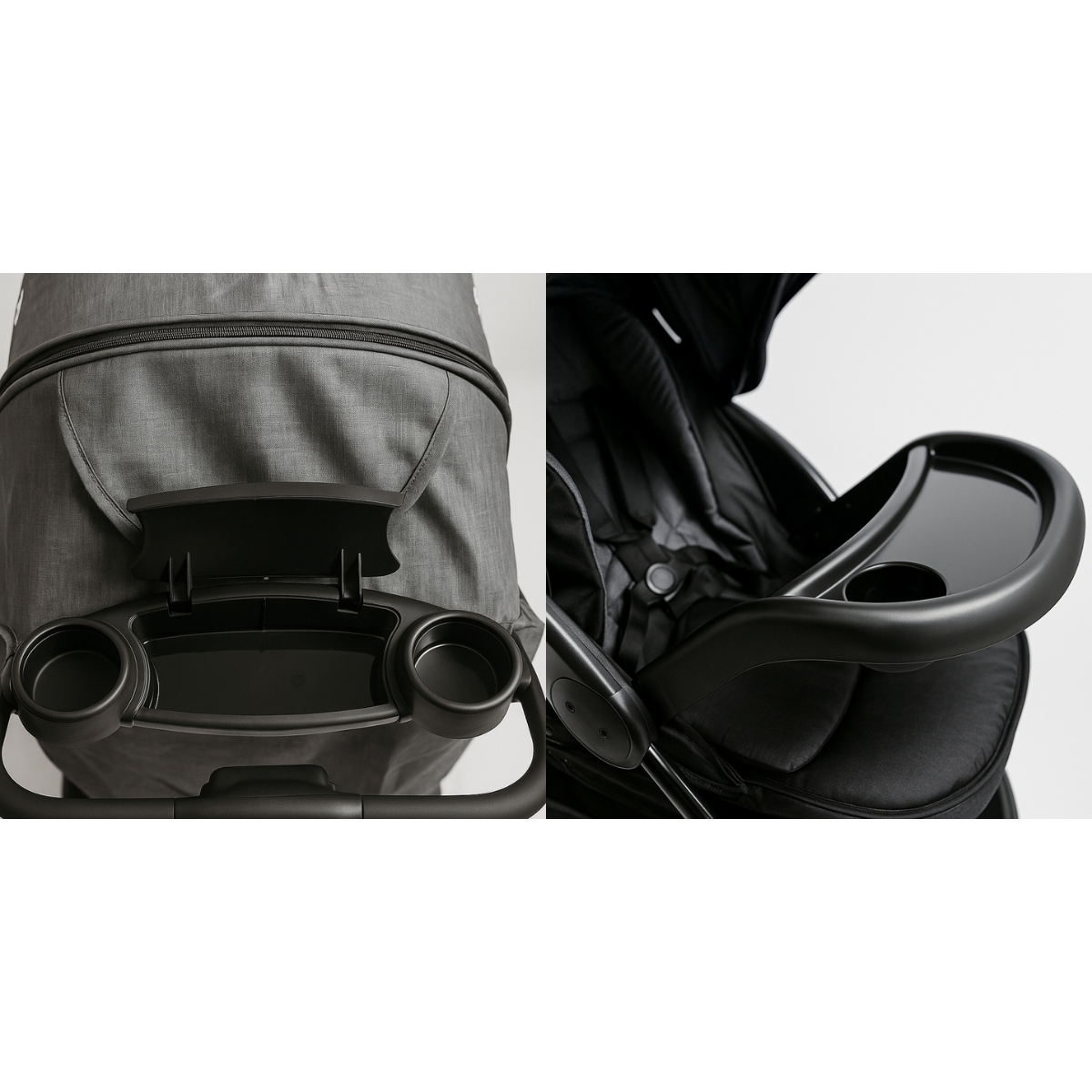 Bandeja superior con posavasos y bandeja inferior amplia con posavasos para mayor comodidad.