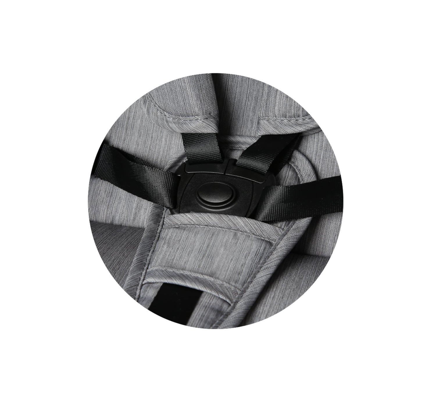 La barra frontal desmontable y articulada, junto con el cinturón de seguridad de cinco puntos de anclaje, brindan gran protección al bebé mientras está en el cochecito.