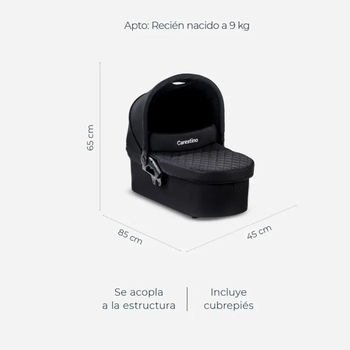 *Se recomienda utilizar con el respaldo en posición horizontal de 0 a 6 meses.