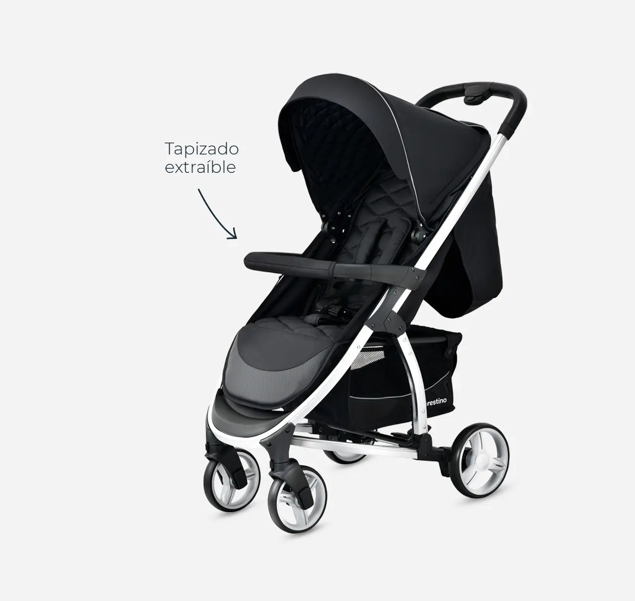 Incluye un moisés amplio y cómodo adaptable a su estructura y una butaca huevito homologada para uso en auto, siendo la compañera perfecta para cada viaje.