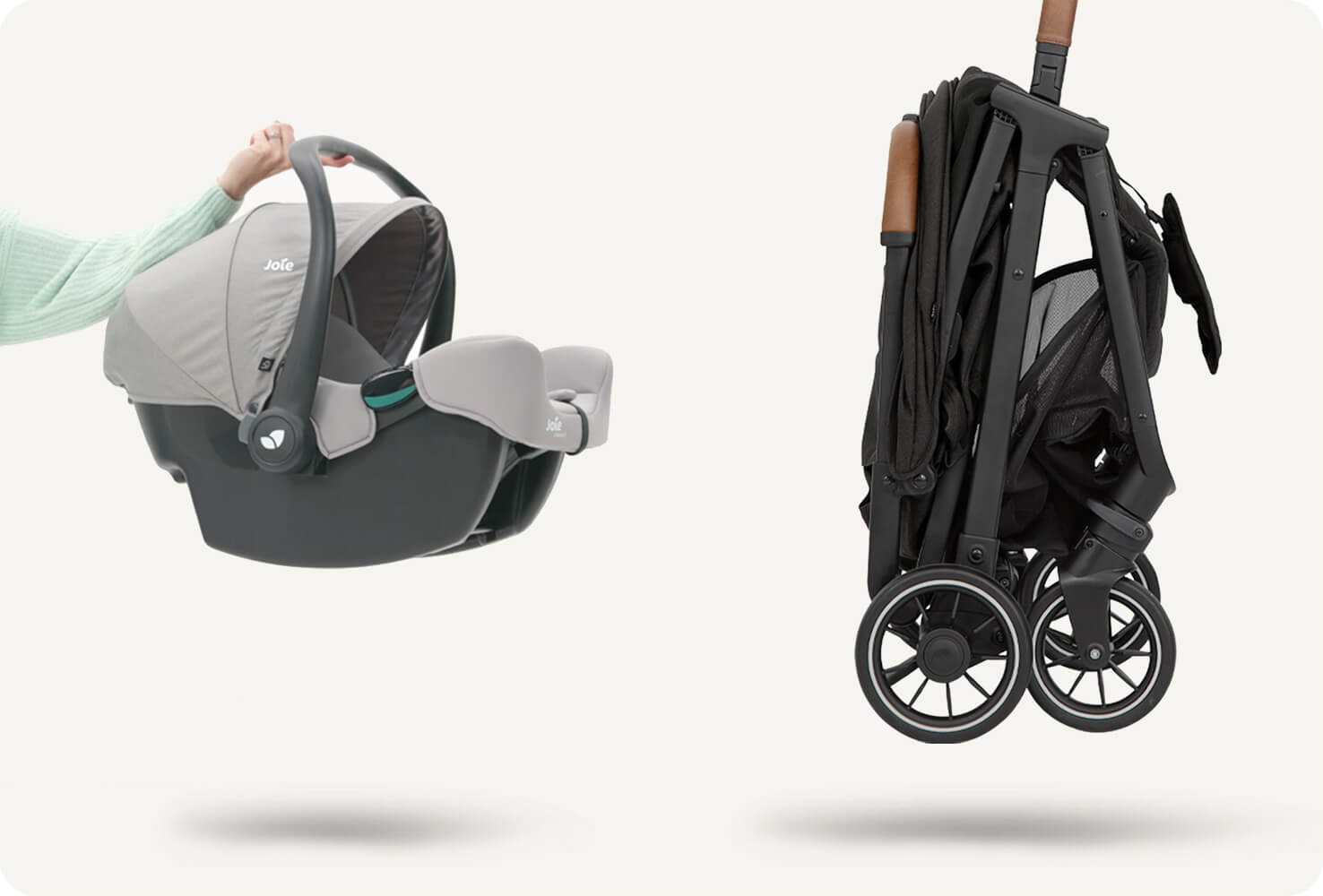 Traslada sin esfuerzo a tu bebé dormido del coche a la silla de paseo con el portabebés i-Snug 2 incluido, que se conecta con un rápido clic mediante los adaptadores.