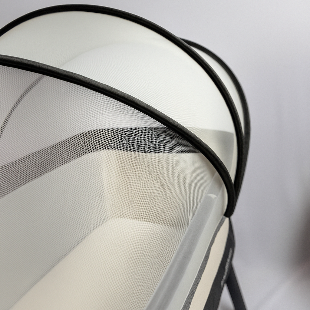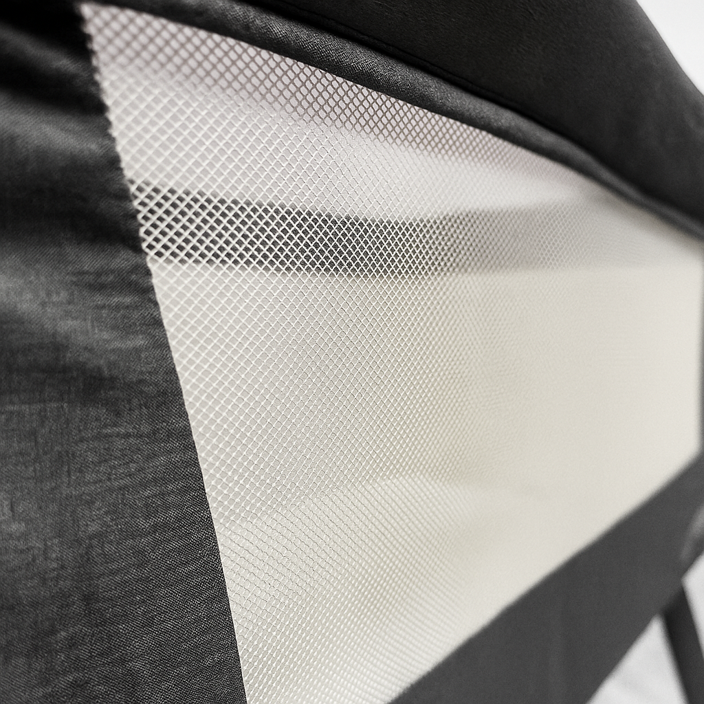 Un lado tiene una ventana de malla que mejora la circulación de aire, manteniendo al bebé fresco y permitiendo una vista clara desde cualquier ángulo.