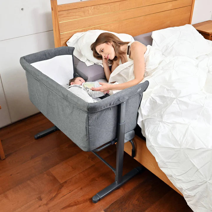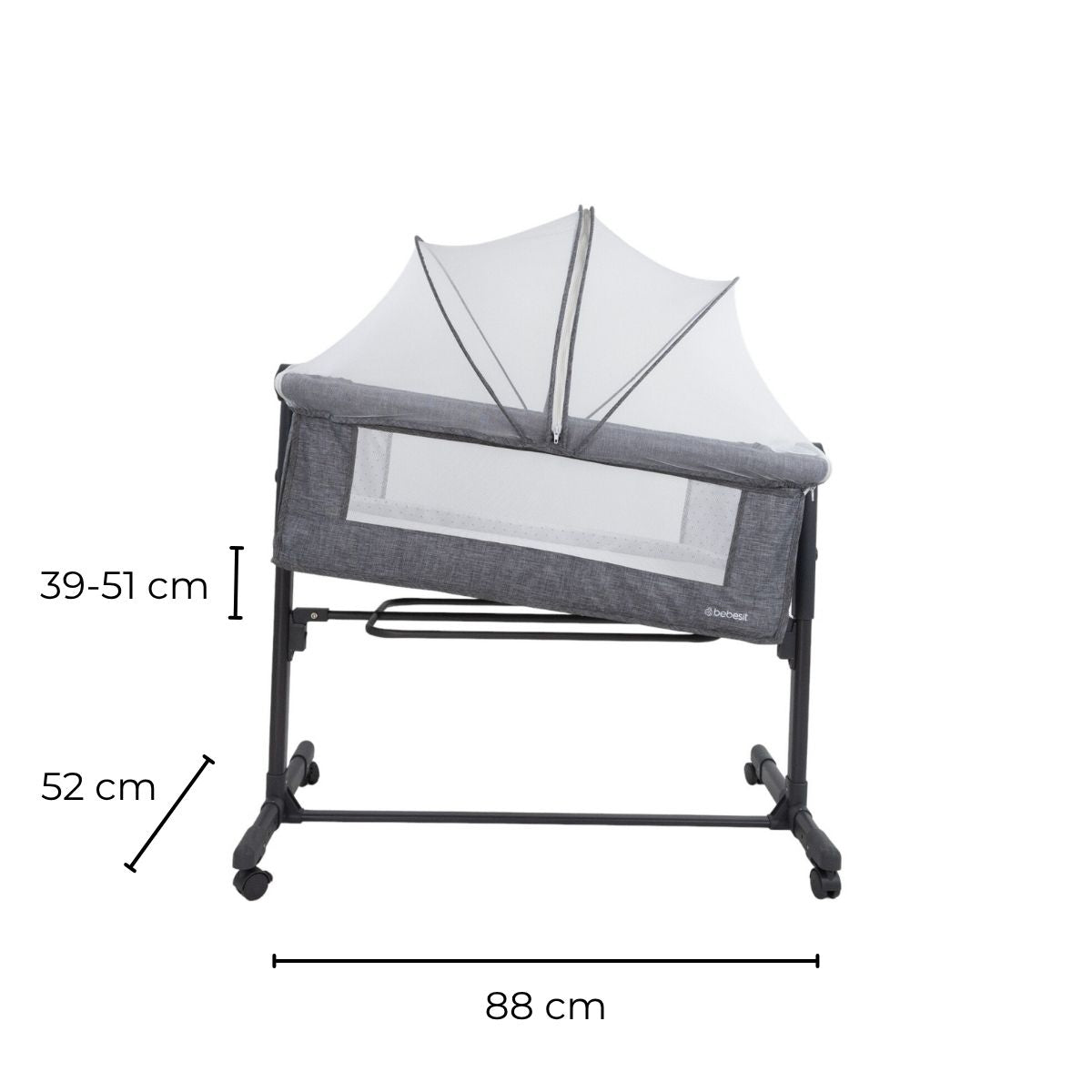 Con estructura de aluminio liviano y resistente, esta cuna 2 en 1 puede usarse tanto como cuna independiente como cuna colecho, adaptándose fácilmente al costado de tu cama.