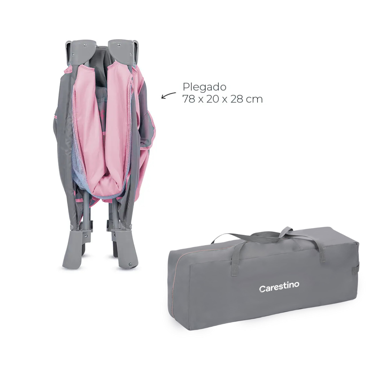 La practicuna VIENA tiene un plegado ultra compacto, ideal para guardado y traslado. Incluye un bolso de transporte que permite llevarla cómodamente con sus accesorios, asegurando un espacio de descanso seguro para tu bebé en cualquier lugar.