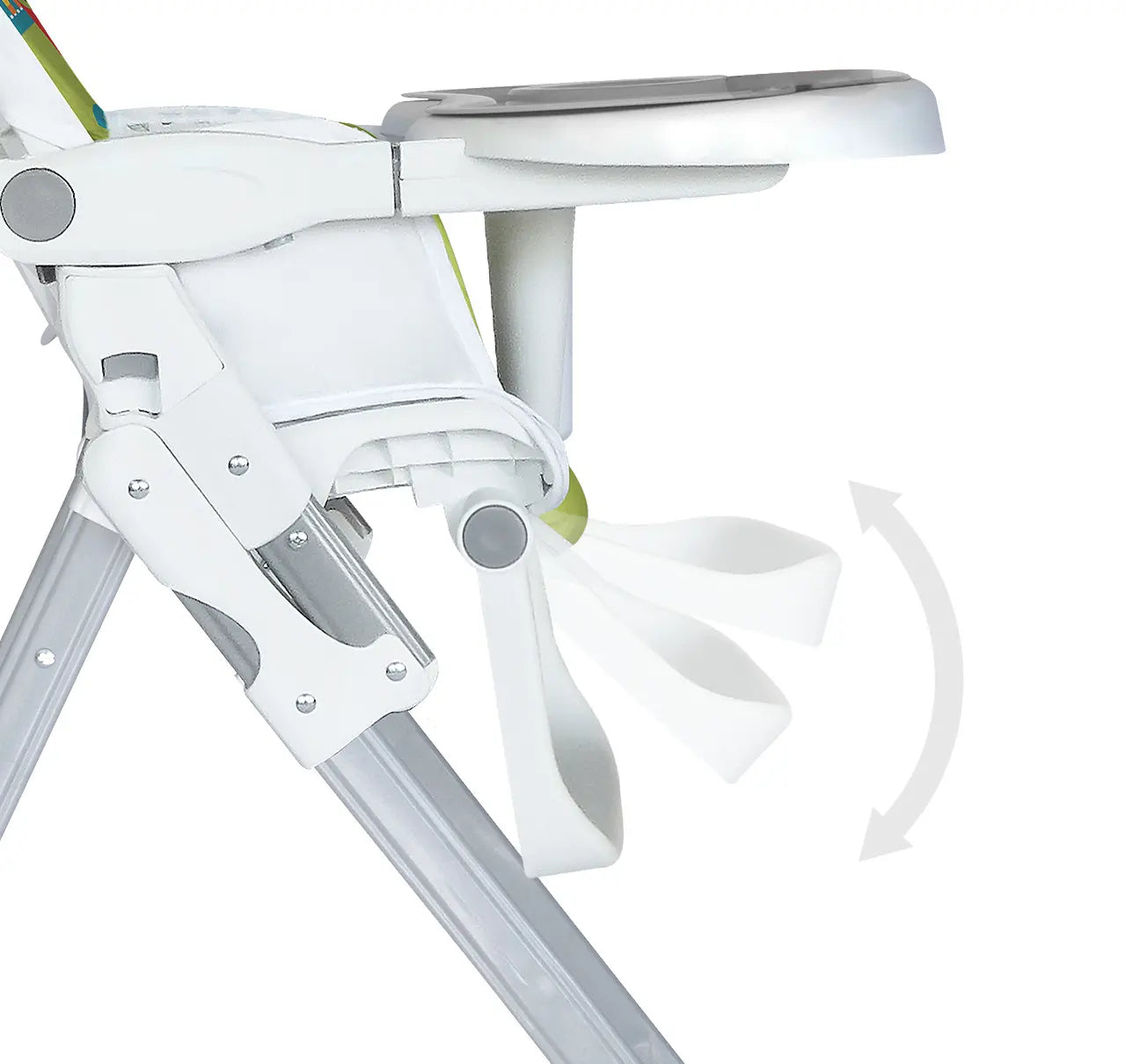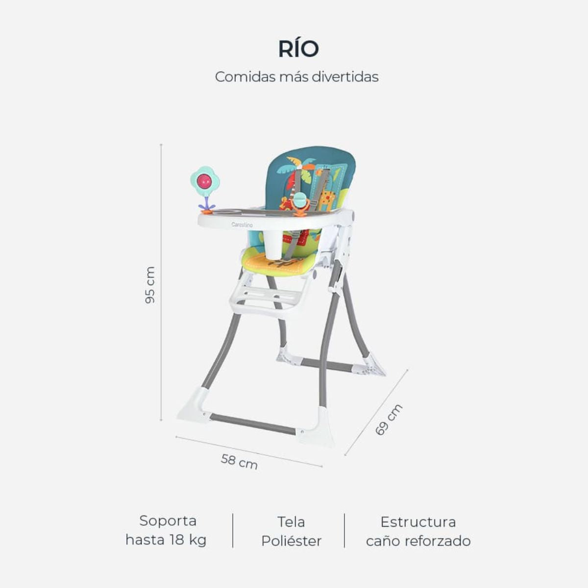 La silla de comer RÍO convierte cada comida en una experiencia única. Sus juguetes de estimulación extraíbles en la bandeja mantienen al bebé entretenido mientras come.