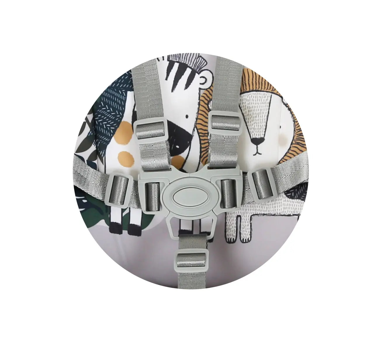 El arnés de seguridad de 5 puntos de la silla RÍO brinda máxima protección con un sistema de hebilla central fácil de usar y correas ajustables que se adaptan al crecimiento del bebé.